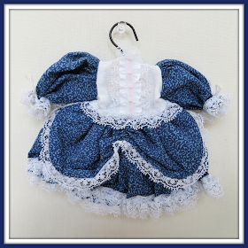 The first dress ornament I decided to create was a 7" Victorian dress ornament that would hang on a miniature hanger. It had multiple over-skirts, lace trimmed bodice and a ton of decorative lace trims.
